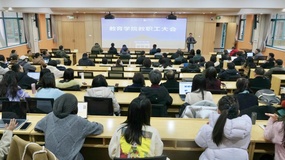 院长黄海涛对新学期重要工作进行了全面部署。他首先依据校图书馆撰写的《教育学学科竞争力分析报告》对学院在学科竞争力方面的表现进行深入剖析,通过对比11所国内对标高校,明确学院在学术论文发表、“人大报刊复印资料”转载量、基金项目、成果获奖等方面的优势与不足,为学科发展找准定位。结合《教育强国建设规划纲要(20242035年)》提出学院学科建设的总体目标与推进思路,致力于构建高水平教师教育学科体系,涵盖学科发展核心方向、理论基础、保障条件等关键内容。在人才队伍建设上,坚持外引内培,实现高层次人才的新突破;大力加强高水平教育学科平台建设,依托现有多个重要平台,提升学院影响力。同时,强调有组织科研的重要性,积极推进学科点内涵建设,持续提升人才培养质量,涉及专业迭代升级、教材教学改革等方面。此外,还对新学期本科教学工作做出细致安排,并介绍了丰富多样的社会服务项目,鼓励教职工积极参与,共同建设幸福学院。
