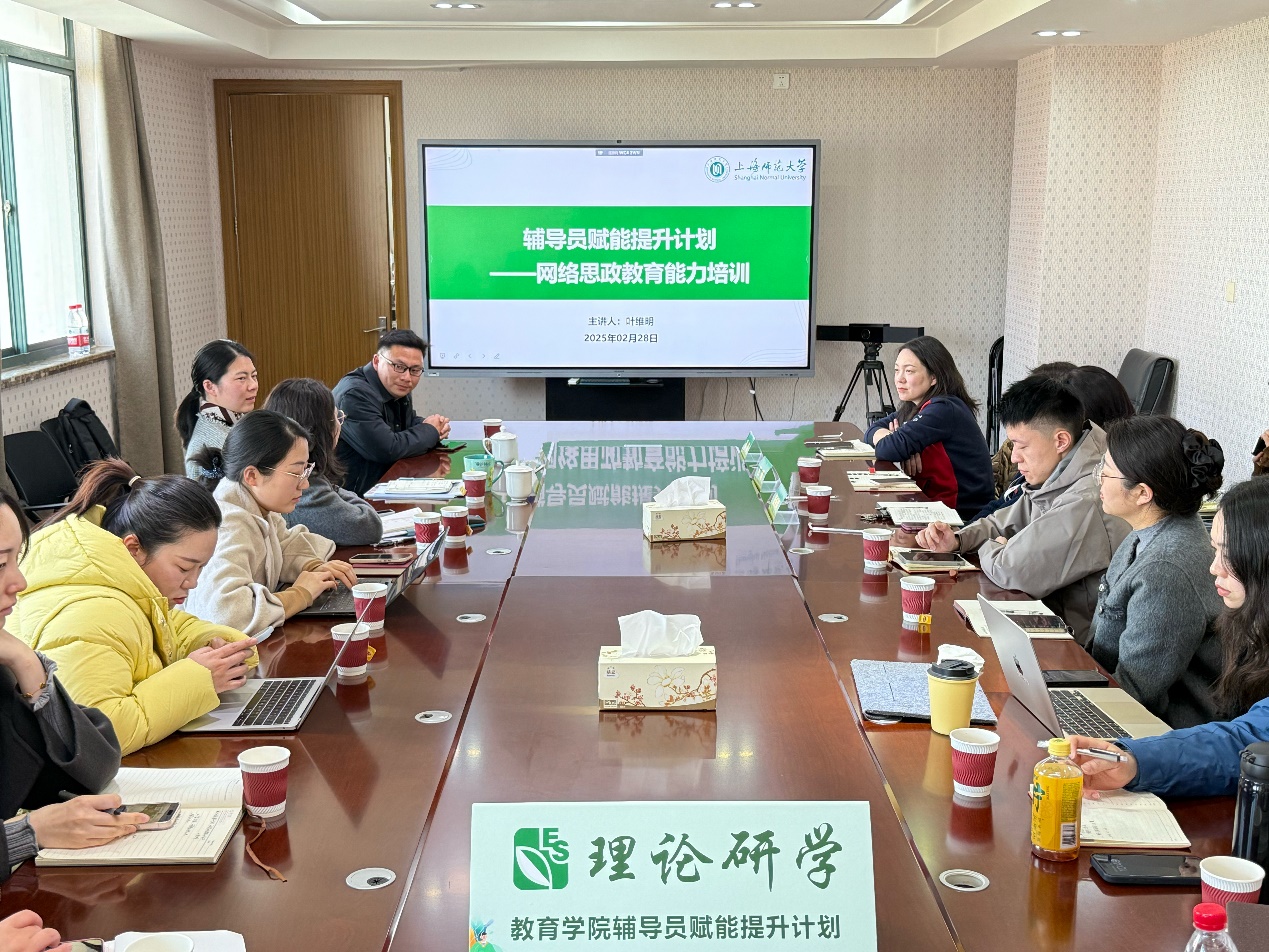 为适应新时代思想政治教育工作的发展需求,进一步提升辅导员网络思政工作能力,2月28日上午,j9九游会官方网站、学前j9九游会官方网站、心理学院、马克思主义学院、音乐学院联合举办辅导员赋能提升计划——网络思政教育能力提升培训。本次培训邀请上海第二工业大学学生处思想政治教育科科长叶维明开展《 “从‘需’到‘为’:辅导员网络思政进阶之路”专题分享》。五个学院分管学生工作副书记、负责人和辅导员参加此次活动。