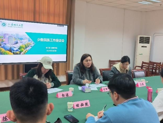 潘梦琳向学工部老师介绍我院少数民族学生工作的基本情况,着重阐述在少数民族学生教育管理、精准帮扶等方面的上特色做法和有效措施,同时提出工作推进过程中遇到的难点与挑战,向与会老师共同探讨。
