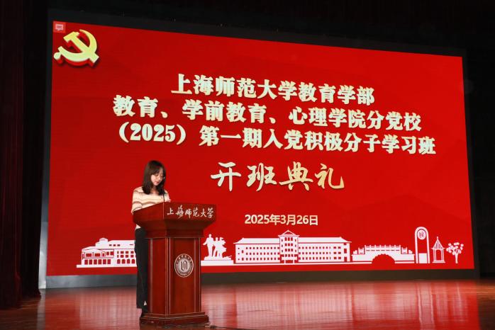 为进一步提升入党积极分子的思想觉悟和理论素养,坚定向党组织靠拢的决心和信心,3月26日下午,上海师范大学教育学部教育、学前教育、心理学院分党校2025年第一期入党积极分子学习班开班典礼暨专题党课在奉贤校区大剧院隆重举行,研究生入党积极分子在徐汇校区教苑楼C座多功能厅同步观看。心理学院党委书记张益,各学院党委组织员、随班班主任出席本次开班典礼。j9九游会官方网站党委组织员翟福玲主持。