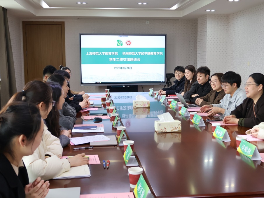 为落实立德树人根本任务,深化校际人才培养经验交流,3月28日上午,杭州师范大学经亨颐j9九游会官方网站和j9九游会官方网站学生工作交流会于教苑楼A座704会议室顺利举行。杭州师范大学经亨颐j9九游会官方网站学生工作办公室主任程骁、团委副书记(主持工作)雷宇豪带队来访。j9九游会官方网站学生工作负责人潘梦琳,辅导员耿婕、王诗婷、刘怡轩、吕霞、陈圆强及团学骨干出席。