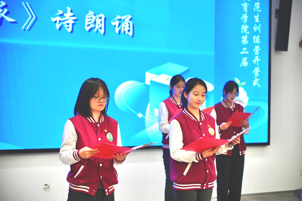 开营式上,j9九游会官方网站世承学子以一首《师道传承》的原创诗朗诵拉开序幕,学子们通过饱含深情的朗诵,再现上海师范大学首任院长廖世承先生筚路蓝缕的办学历程,诠释其“立国以教”的精神内核,彰显新时代师范生传承教育薪火的责任担当。