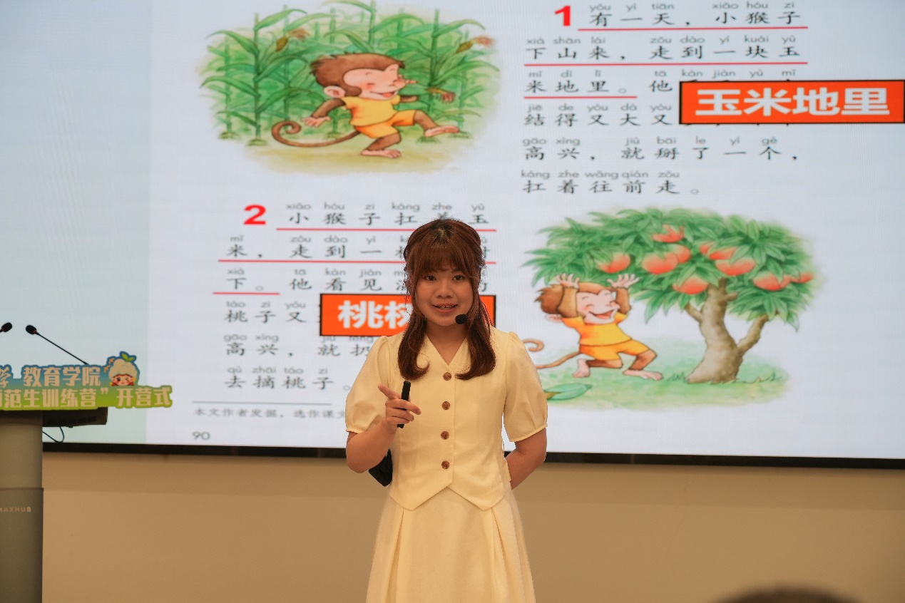 随着新角色的解锁,潘老师与“师小育”以趣味互动问答的形式介绍了本届“卓越师范生训练营”活动的核心内容、特色亮点及专业成长支持。