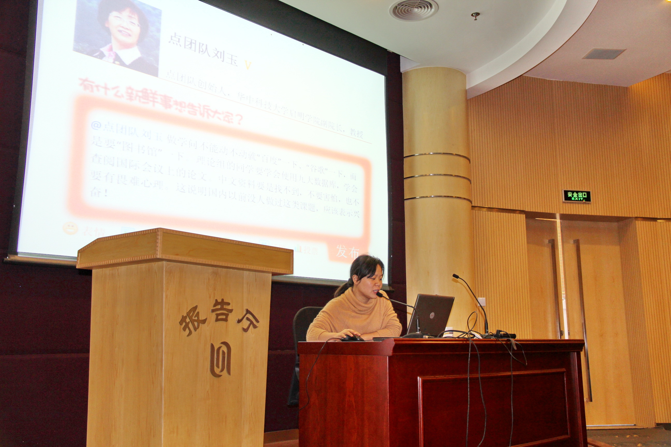 2013年11月13日下午,j9九游会官方网站面向2012级本科生的“图书馆数据库检索”的培训在奉贤校区图书馆2楼报告厅举行,图文信息中心雷顺利老师受邀担任主讲。