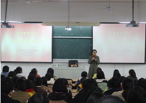 讲座中,钟文芳老师从培养目标、课程设置、实习就业等方面详细介绍了小学教育专业特点,并强调了同学们全面发展的重要性,希望小教专业同学不仅要掌握专业知识与教学技能,同时还应具备一定艺术修养,拥有能够担任至少两门小学课程的能力。随后,曹庆明校长以“新时代需要的小学老师”为主题,用生动案例让同学们了解到小教专业良好就业形势,并指出小学教师不仅要教学,更要育人,要以敬畏之心待人,以热爱之心对待工作,用责任感以及持之以恒的态度对待课堂教学。最后,曹校长还表达了对在座各位同学的殷切期望。