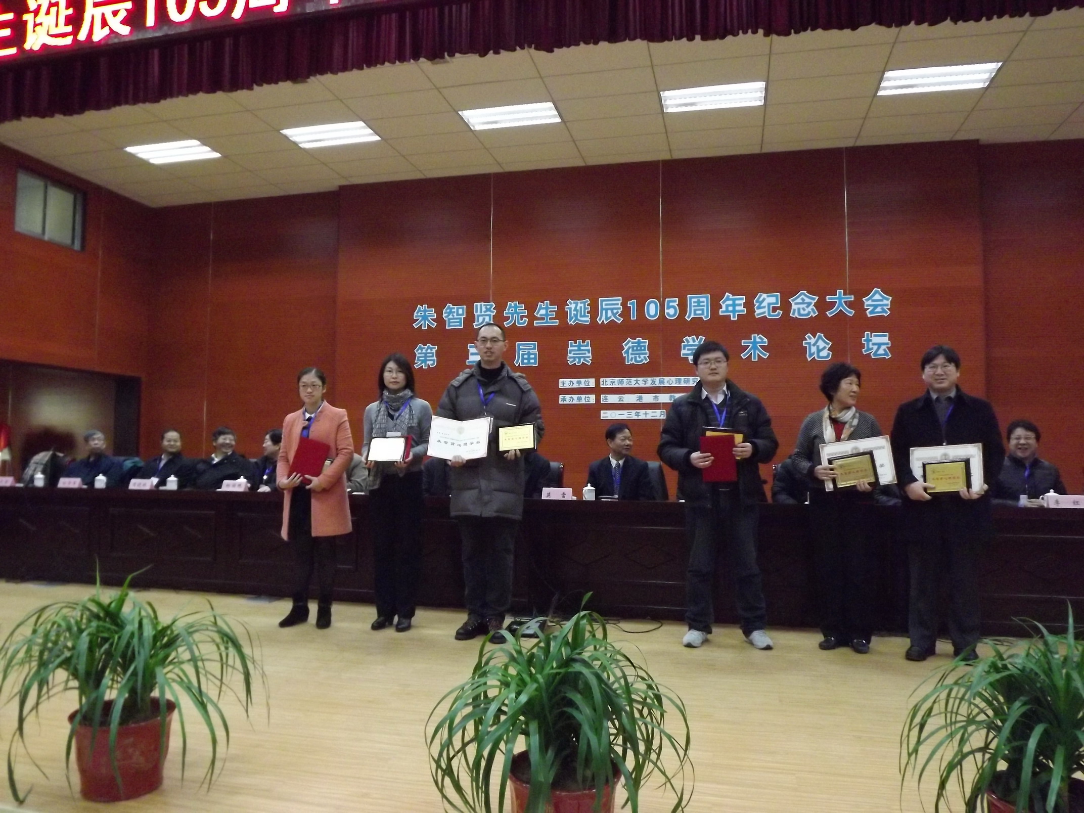 “朱智贤心理学奖”是由朱智贤心理学基金委员会设立的发展与教育心理学专业民间最高级别的奖项。此奖旨在纪念朱智贤先生对我国心理学事业发展与专业人才培养做出的杰出贡献,奖励在发展与教育心理学理论建设与实证研究中取得优秀成果的心理学工作者。今年全国一共有六位学者获此殊荣,我院心理系蔡丹老师名列其中,教育部基础教育二司申司长亲自给蔡丹颁发了“朱智贤心理学奖”奖牌及奖状。据悉,心理系卢家楣教授曾获得过第一届朱智贤心理学奖,顾海根教授和李丹教授获得过第四届朱智贤心理学奖。这标志着j9九游会官方网站心理系的科研水平获得了国内专家认可并位居前列。