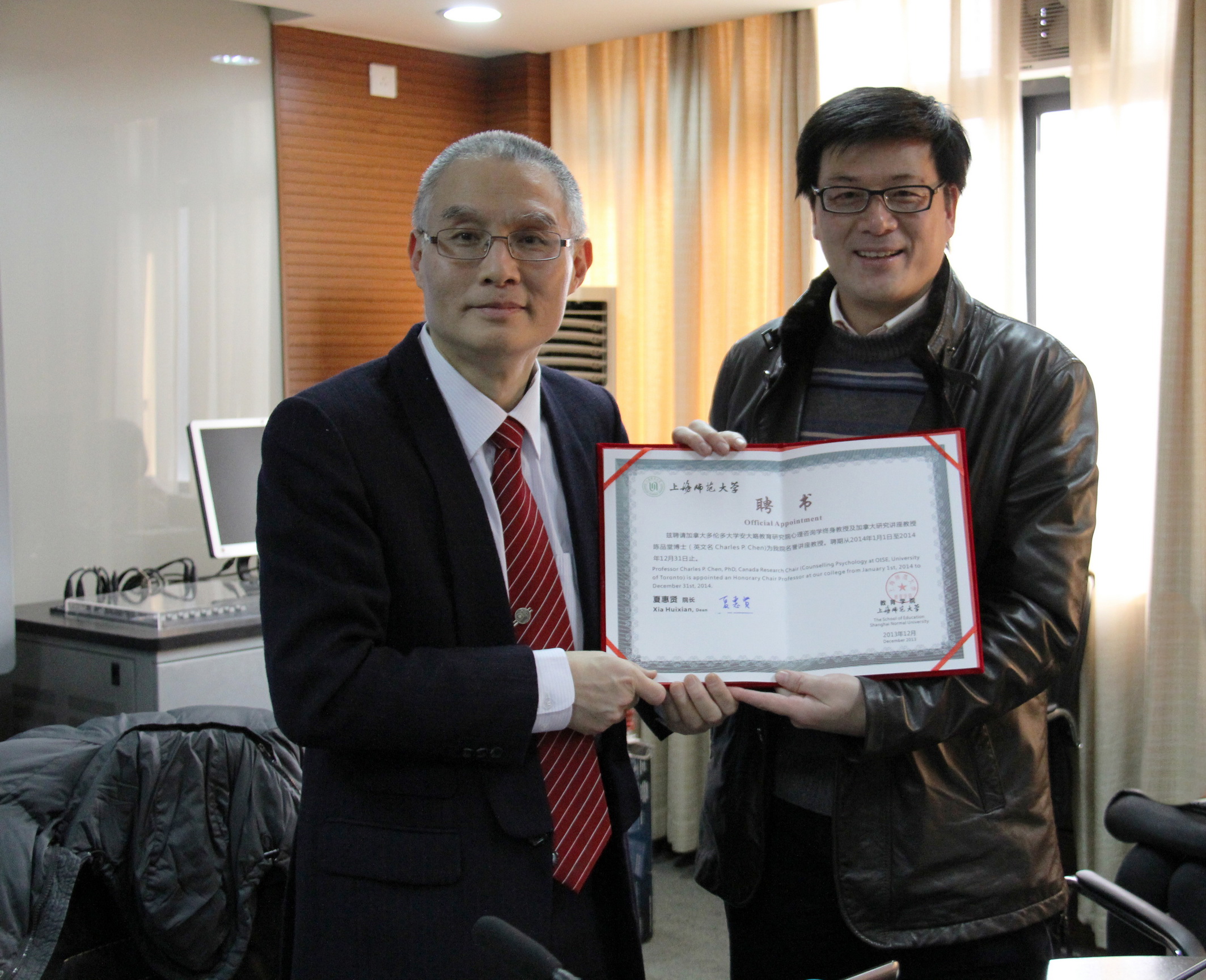 2014年1月6日,应j9九游会官方网站院长夏惠贤教授的邀请,多伦多大学终身教授陈品堂博士来到上海师范大学,受聘为j9九游会官方网站的客座教授。