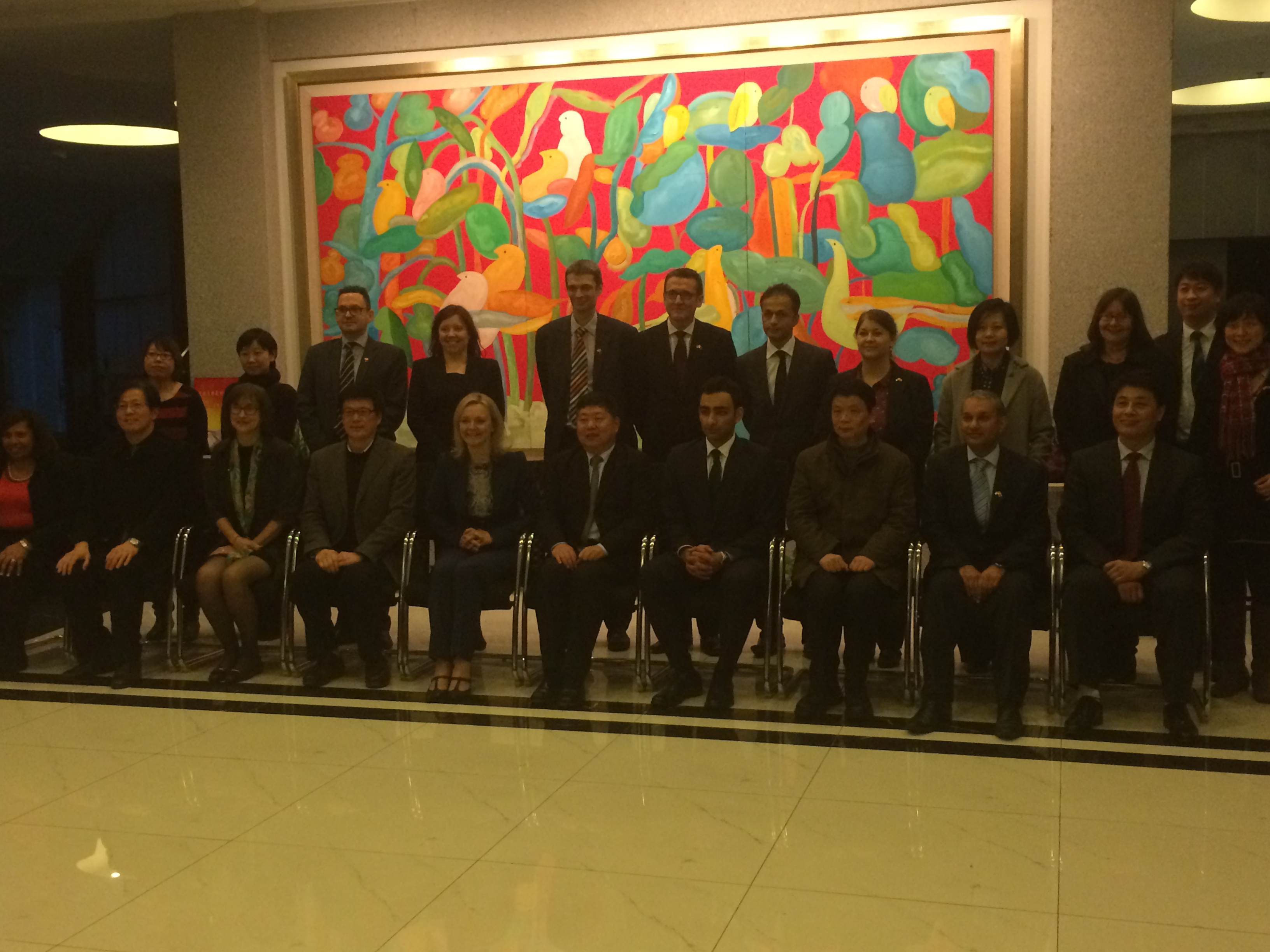 作为国际学生评估项目PISA的上海项目负责人,张民选校长首先告诉客人:“尽管上海15岁学生在PISA项目中取得了优异的成绩说明我们的基础教育质量不错,但基础教育并不是教育的全部。欧洲和美国的高等教育远比中国的发达。我们更要向包括英国在内的西方发达国家学习你们的高等教育、职业教育等。” 随后,张民选校长向外宾介绍了上海的教师教育以及上海师范大学在上海中小学教师培养上的地位与功能。此外,应外方要求,张民选校长还饶有兴趣地介绍了上海师范大学小学数学教师培养方案和课程设置等。