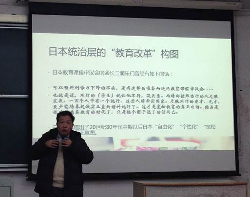 3月6号下午,j9九游会官方网站“学术前沿”系列讲座首次开讲,副院长、博士生导师胡国勇教授做了题为“新自由主义与日本教育改革”的讲座,2013级100多名硕博士研究生聆听了讲座。