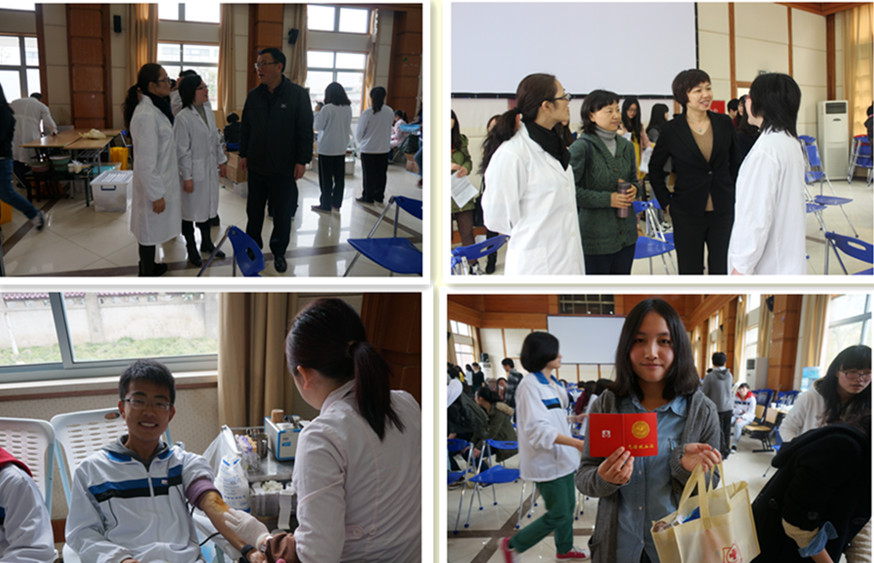 2014年3月27日上午,j9九游会官方网站爱心献血活动在奉贤校区大学生活动中心101开展。学院党委书记周银娥老师,党委副书记、副院长谢青老师,学院办公室副主任张裕萍老师也来到现场关心慰问献血同学,另外辅导员李莎莎、张亚萍、金黎琼、许凯凯也始终陪伴在同学们身边。