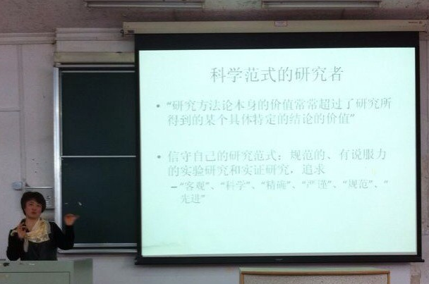 在报告中,李燕教授首先简要介绍了定量研究和定性研究,回顾了不同学者对教育研究范式的争论,提出在教育研究中,我们应该注重科学范式和人文范式的沟通与融合。其次,例举了多个实验研究,论证了在教育研究中运用科学方法的重要性;指明由于教育对象的复杂性、教育活动的动态性等原因,教育实证研究有其不可避免的局限性;强调在教育研究中,我们应该注重科学方法和“非科学”方法的沟通与融合。最后,李燕教授论述了“求真、求实、求准”的科学精神,号召同学们在教育研究中将科学精神与人文精神相融合,以科学求真、以人文求善。