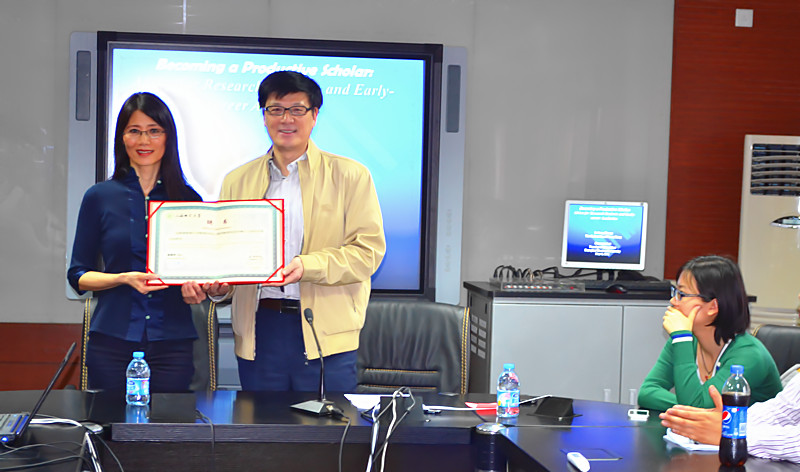 在讲座开始前,夏惠贤院长代表j9九游会官方网站聘请张丽芳教授担任 “客座教授”,并颁发了聘书,期望她能多给j9九游会官方网站的师生传经送宝。
