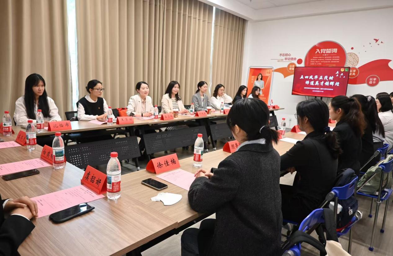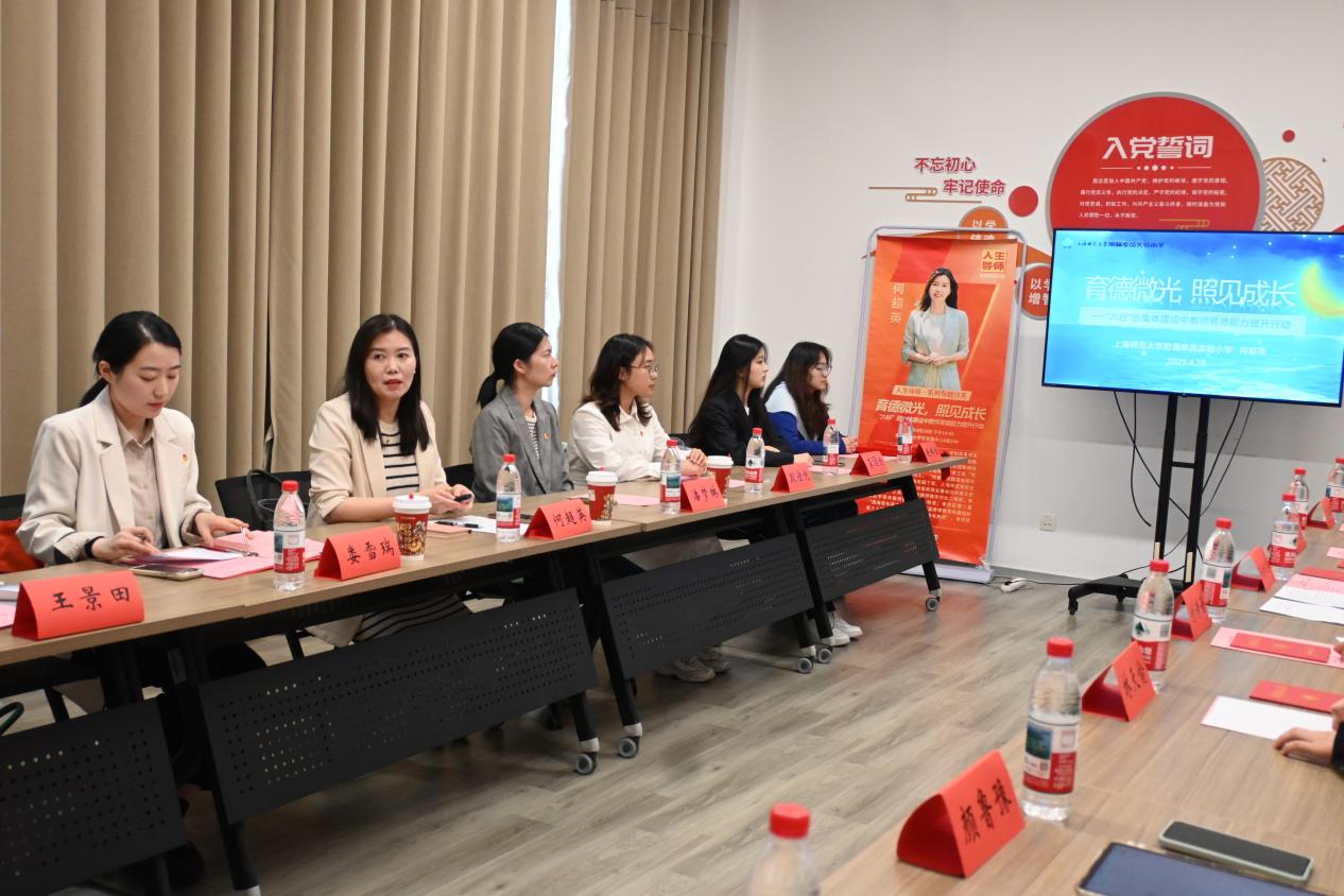 次日,上海师范大学奉贤附属实验小学校长何超英,j9九游会官方网站学生工作负责人潘梦琳,辅导员娄雪瑞与团员青年代表齐聚一堂,围绕“新青年勇于担当,新教师以德育人”展开交流。何超英校长结合自身工作经历,鼓励同学们要基于实践中的问题精进自身能力,不断适应角色身份的转变,贯彻五育并举理念,努力成长为高素质、一专多能的师范生。