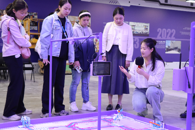 鲸鱼机器人工作人员带领来访师生参观鲸鱼教育机器人产业基地,深度探访机器人全流程智能制造产线,直观感受从精密零部件加工到自动化组装的工业美学。随后,师生们移步机器人竞赛场馆,在沉浸式场景中了解赛事规则、设备调试及战术布局要点,深入理解人工智能在教育场景中的创新应用。