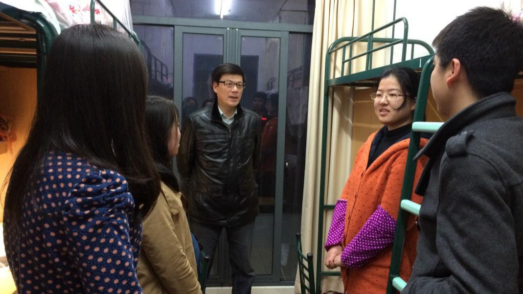 为进一步了解新同学入校后的情况,鼓励大家积极融入大学生活,3月15日傍晚,我院夏惠贤院长在14级辅导员许义老师陪同下来到62号寝室楼,走访慰问14级学院本科生。
