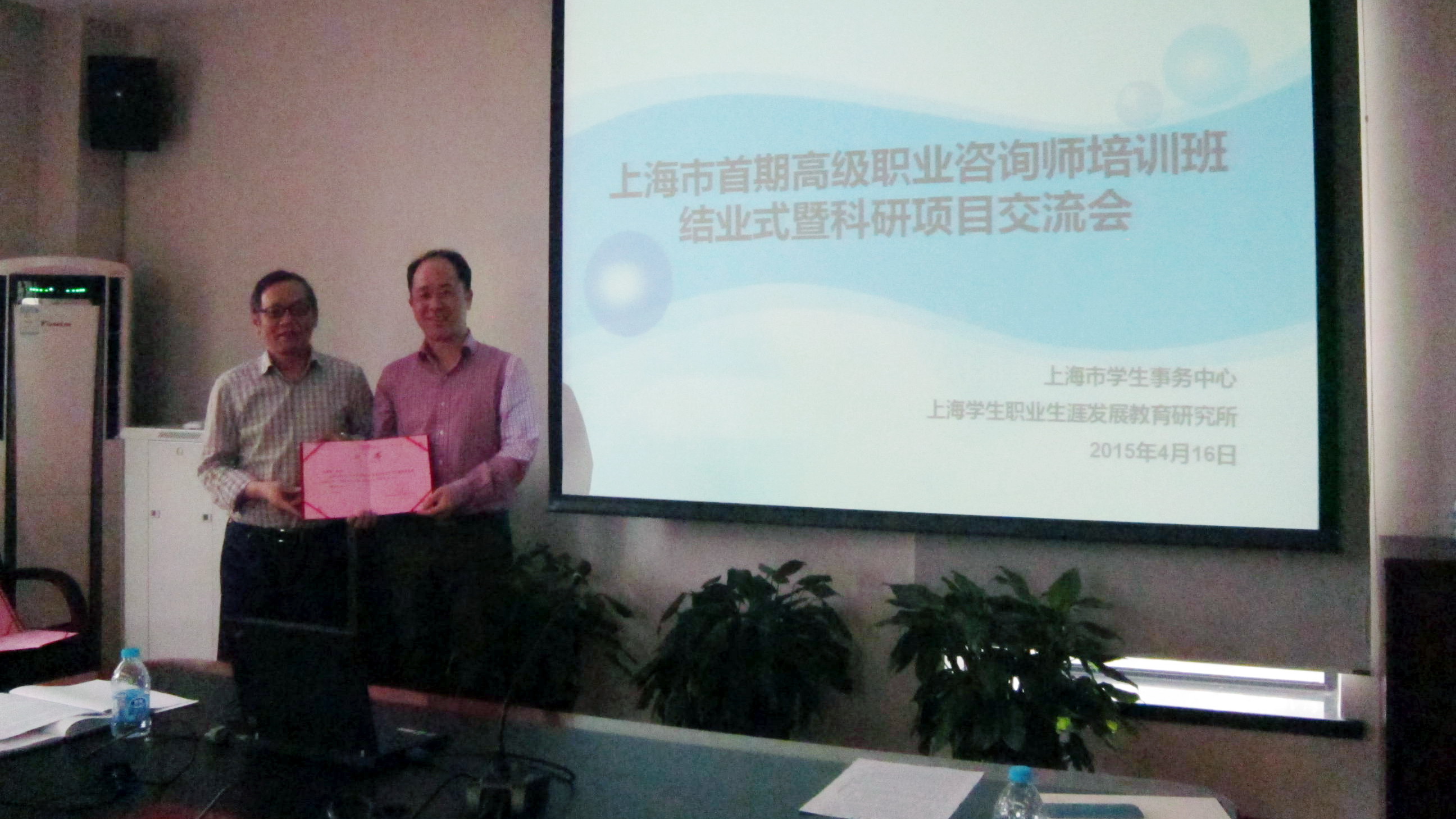 2015年4月16日下午,在上海市首期高级职业咨询师培训班结业典礼上,设立在我院的上海学生职业生涯发展教育研究所聘请了来自上海交通大学、华东师范大学、东华大学等大学的20位职业生涯教育专家担任研究所的兼职研究人员。研究所高耀明教授为兼职研究人员颁发了聘书,学生事务中心田磊主任、张惟勇老师和窦俊老师,研究所夏人青研究员、范为桥教授,黄海涛副教授和周晓璐博士参加了聘任仪式。