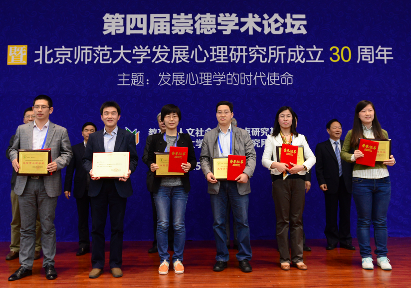 论坛期间还举行了“第六届朱智贤心理学奖”颁奖仪式。该奖项的设立旨在纪念已故著名心理学家、教育家朱智贤教授为我国教育事业、心理学事业所做出的杰出贡献,鼓励心理学工作者为我国的心理与教育科学研究事业而努力工作。继卢家楣教授获得第一届朱智贤心理学奖、顾海根教授和李丹教授获得第四届朱智贤心理学奖、蔡丹副教授获得第五届朱智贤心理学奖后,我院教师罗俊龙在本届朱智贤心理学奖评比中再获此殊荣。罗俊龙获奖的题目是 “创造性思维中原型启发促发顿悟的神经机制”。