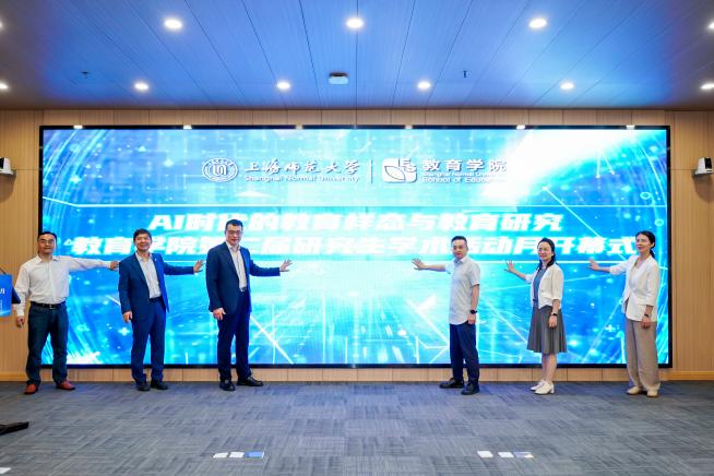 为落实立德树人根本任务,深化研究生教育高质量发展,5 月 14 日下午,j9九游会官方网站于国际教师教育中心世承讲堂顺利举办第二届研究生学术活动月开幕式,人形机器人登上开幕式舞台。本次活动以“AI时代的教育样态与教育研究”为主题,聚焦教育与前沿科技的融合创新,致力于培养契合时代需求的高素质研究人才。副校长陈恒、研究生院常务副院长张昉、上海交通大学计算机学院教授杨旸受邀出席。活动由j9九游会官方网站院长黄海涛主持。