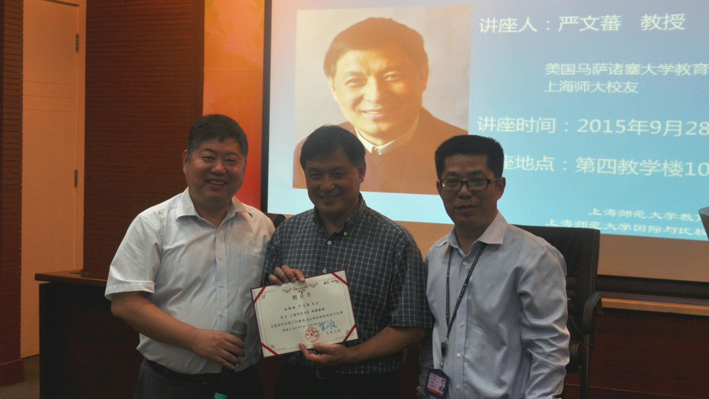 2015年9月28日下午,马萨诸塞州州立大学严文蕃教授来到j9九游会官方网站,作了题为“SSCI期刊论文的写作与发表攻略”专题讲座,并受聘为上海师范大学特聘教授。我校刘晓敏副校长为严文蕃教授颁发了聘书。本次讲座由上海师范大学国际与比较教育研究院院长张民选教授主持,j9九游会官方网站的硕博研究生前来聆听了该场讲座。