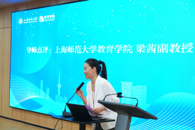 周鹤珍校长深情回顾了研修班的珍贵点滴,并结合每一次学习内容分享学习感悟,阐述了如何将理论学习深度融入治校实践的思考,强调要以教育者的热情与执着,践行教育家精神,为学校高质量发展贡献力量。梁茜副教授在回应中总结了长宁校长在本次培训中展示出“立足校本、理念引领、关注教师、面向未来”的突出特点。