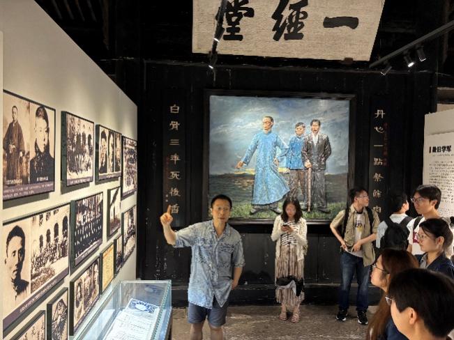 随后,师生来到大通学堂,由专业讲解员详细介绍了这所在中国近代师范教育领域独树一帜的教育机构。从课程设置到师资结构,从学生构成到思想启蒙,大通学堂作为教育改革的缩影,也是徐锡麟、陶成章、秋瑾三位优秀革命志士重要活动场所,在近代中国教育现代化进程中具有深远意义。同志们通过实地观摩与互动式讲解,深刻认识到教育家的双重使命以及其“以教兴革”的宏大理想。